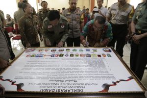 Polres Tangerang Selatan (Tangsel) menggelar rapat koordinasi dan deklarasi kampanye Pemilu Damai bersama partai politik peserta Pemilu 2019 di Aula Lantai 4 Mapolres Tangsel, pada Selasa (2/10)