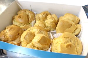 Harga satuan mulai Rp15.000 – Rp25.000. Ada sistem poin, jika kalian telah membeli 10 box Kue Soes, kalian bakalan dapet free 1 box (isi 6 Kue Soes). Setiap bulan, Kue Soes ada rasa baru. Bulan Maret ini ada edisi spesial Soes Tape.