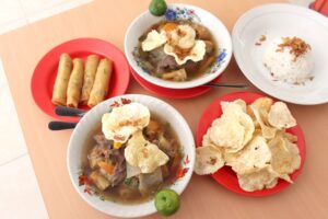 Tidak hanya Soto Mie, yang spesial di sini adalah Soto Daging dengan isian daging sapi, risol, tomat, tanpa mie dan diguyur kuah kaldu nan lezat! Seporsinya Rp30.000.