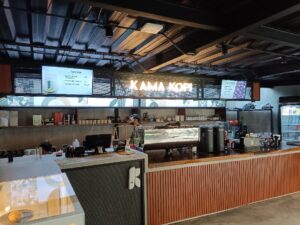 Kama Kopi sebagai salah satu bangunan di sini terdiri dari Smoking dan Non Smoking area. Kama Kopi didesain dengan konsep Grab and Go industrial dan elemen kaca yang dilapisi Solarguard yang mampu menciptakan suasana estetik dan visual yang menarik. Di sini disajikan beragam kopi dan makanan Indonesia. Kama Kopi merupakan venue space yang pas untuk bersantai bersama keluarga, kerabat, dan merayakan berbagai macam acara seperti; acara ulang tahun, intimated engagement, private event, hingga menciptakan konten kreatif untuk media sosial.