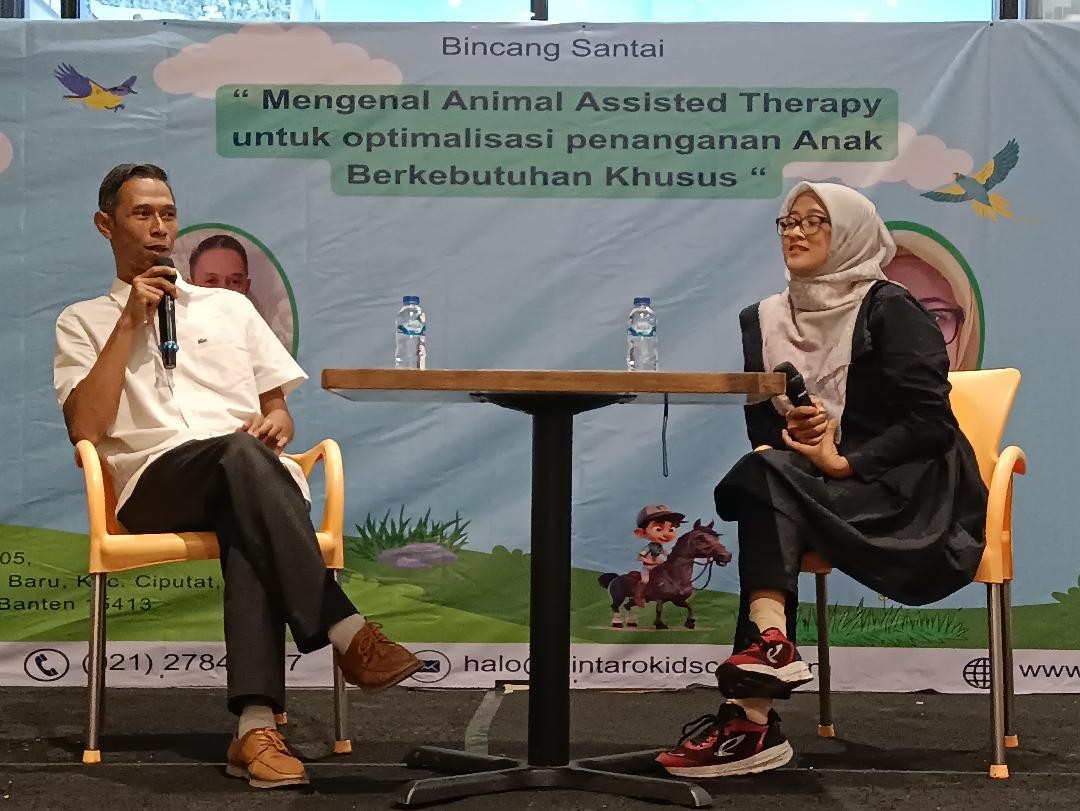 Hijaubintaro.id – Klinik Utama Bintaro Kids Care mengadakan seminar offline Seri Pendidikan Anak Usia Dini dengan tema “Mengenal Animal Assisted Therapy untuk optimalisasi penanganan Anak Berkebutuhan Khusus” pada hari Rabu (20/12/23) di lantai 3 Transpark Mall Bintaro. Seminar offline yang diadakan gratis untuk umum ini menghadirkan narasumber Rito Saputra yang merupakan seorang Praktisi Psikolog Anak Berkebutuhan Khusus.