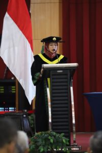Lebih lanjut, Prof. Venus menegaskan bahwa universitas merupakan komunitas ilmiah yang berperan sebagai pusat pengembangan ilmu pengetahuan dan peradaban. “Perguruan tinggi adalah ruang lahirnya gagasan dan inovasi. Guru Besar memiliki tanggung jawab strategis dalam menjaga marwah institusi ilmiah sekaligus membangun budaya akademik yang kuat,” tegasnya.